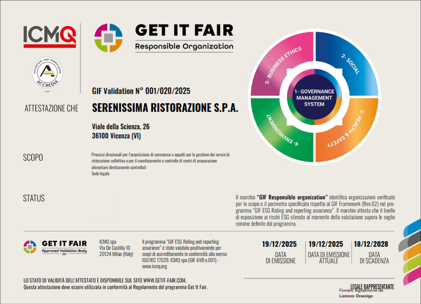 La nostra forza risiede nella sinergia tra tutte le società controllate dall'azienda Capogruppo Serenissima Ristorazione. È proprio grazie a questo stretto legame e a una visione condivisa che siamo in grado di valorizzare le competenze specifiche di ciascuna realtà, creando un sistema efficiente, integrato e orientato all'eccellenza. L'unione e la cooperazione rappresentano per noi aspetti fondamentali: elementi imprescindibili per proporre un servizio sempre più completo, flessibile e competitivo sul mercato.